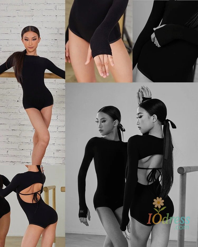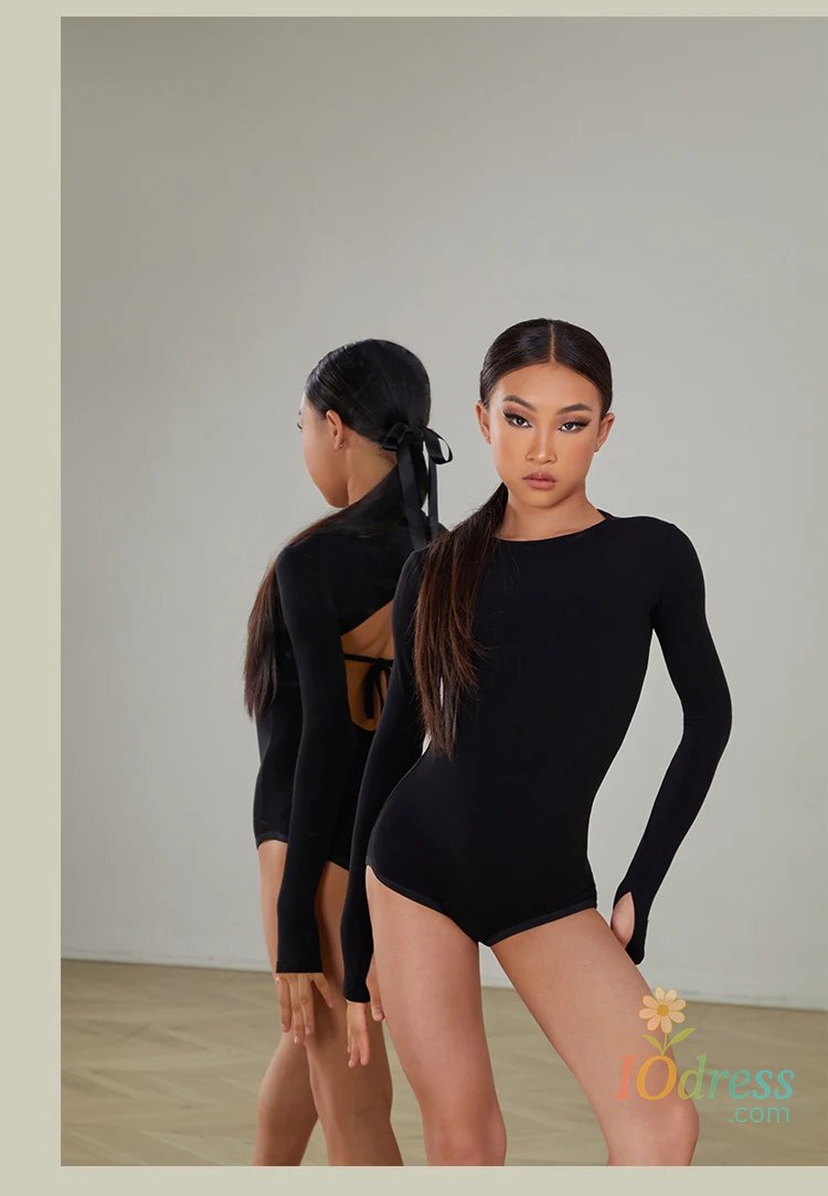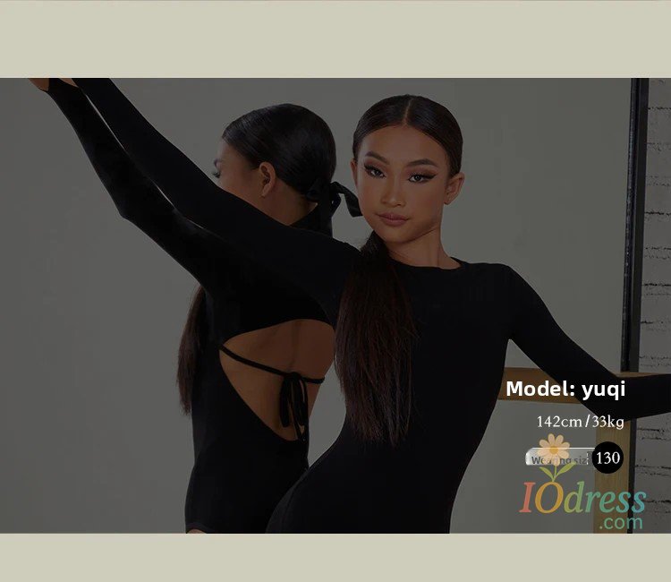 IO Dress 2025 New Latin Dance Dress Suit Costume for Girls Black Sexy Backless Bodysuit Chacha Rumba Tango Training Skirt Kids Dance Wear