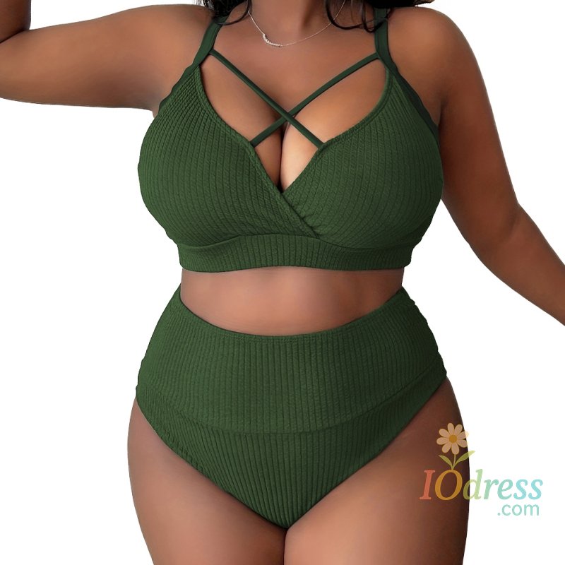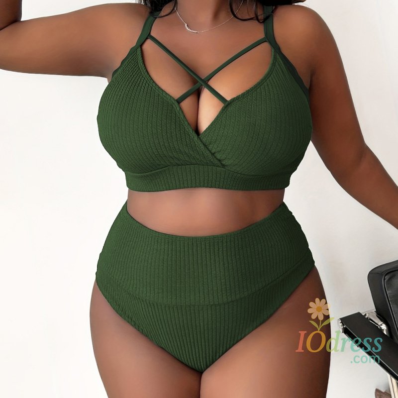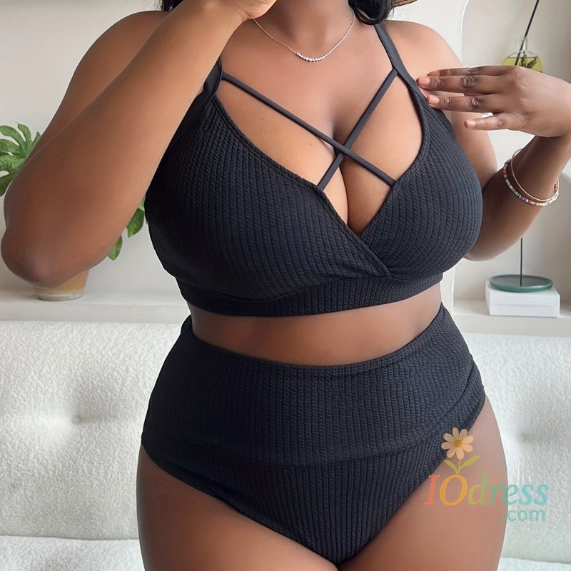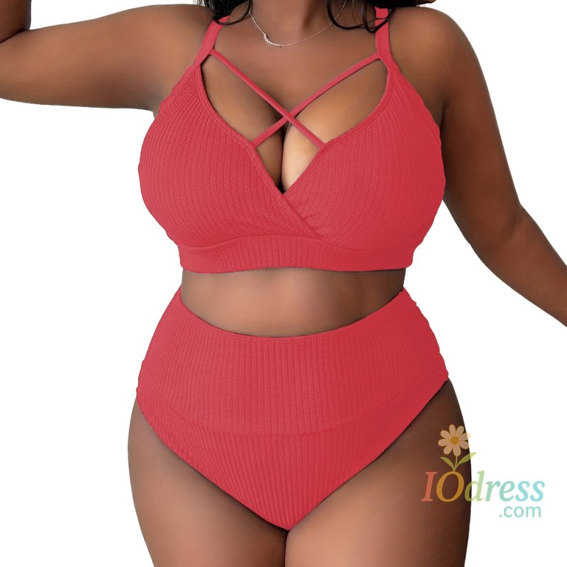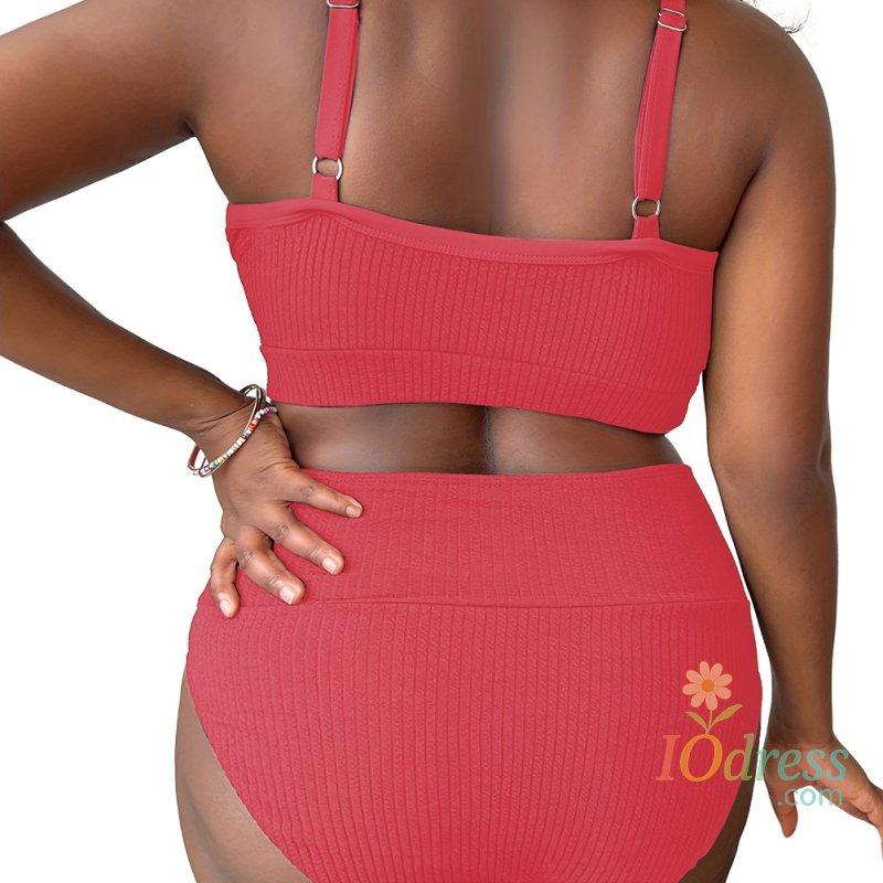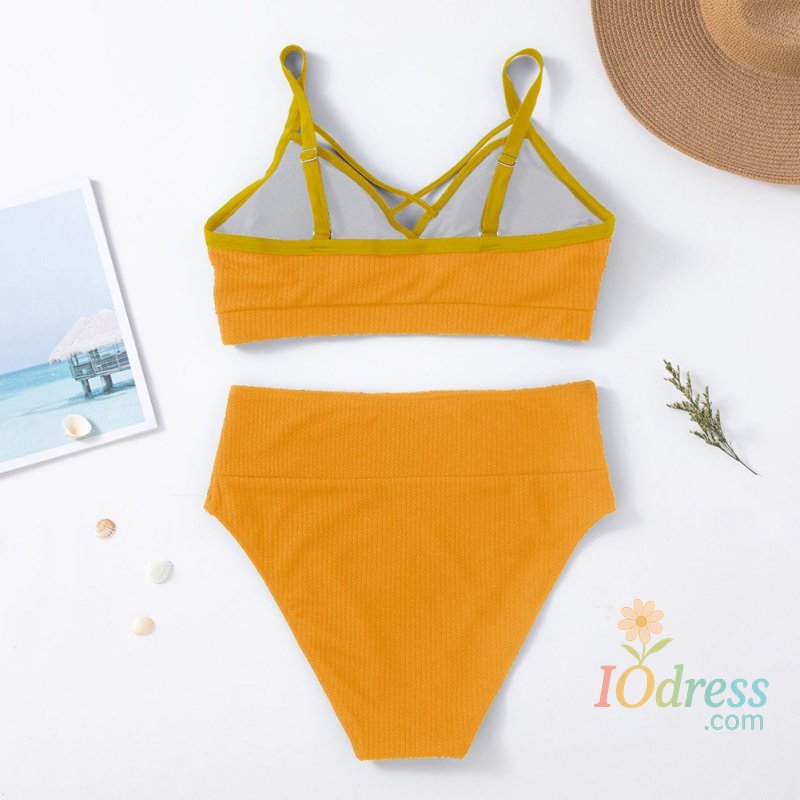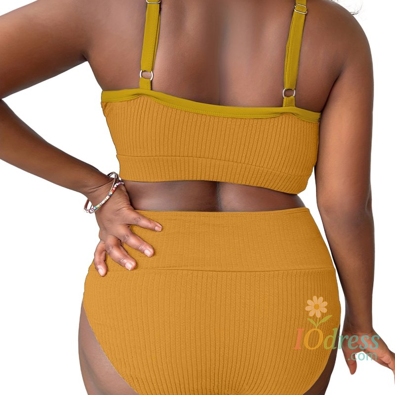 1. Product Name: Women's Split Swimsuit Sexy Plus Size Solid Color Suspender High Waist Bikini Swimsuit