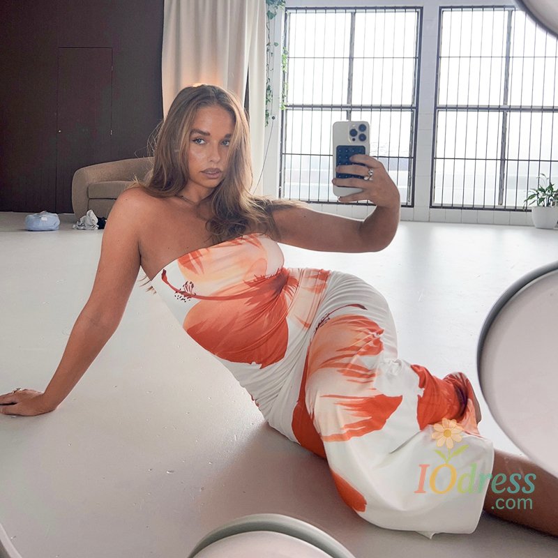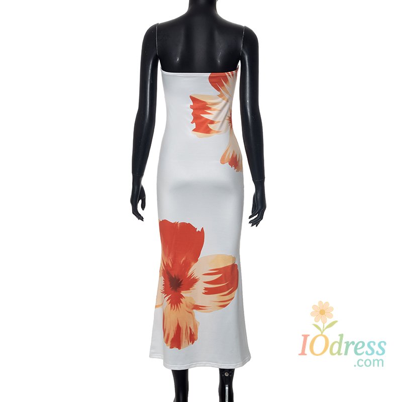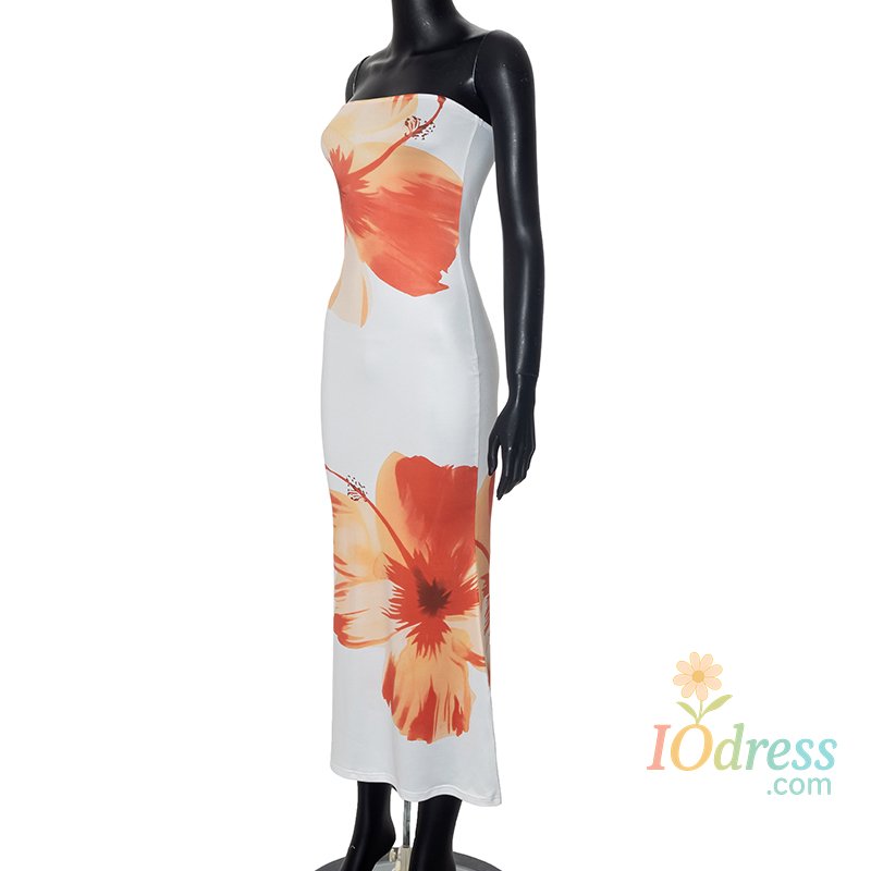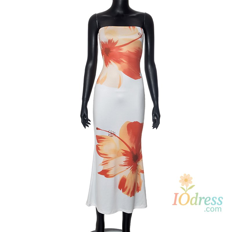 IO Dress CUTENOVA Women's 2024 New Flower Printed Tubeless Dress Casual Vacation Off Shoulder Slim Beach Floor Length Long Dress