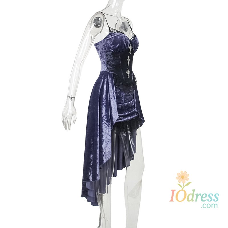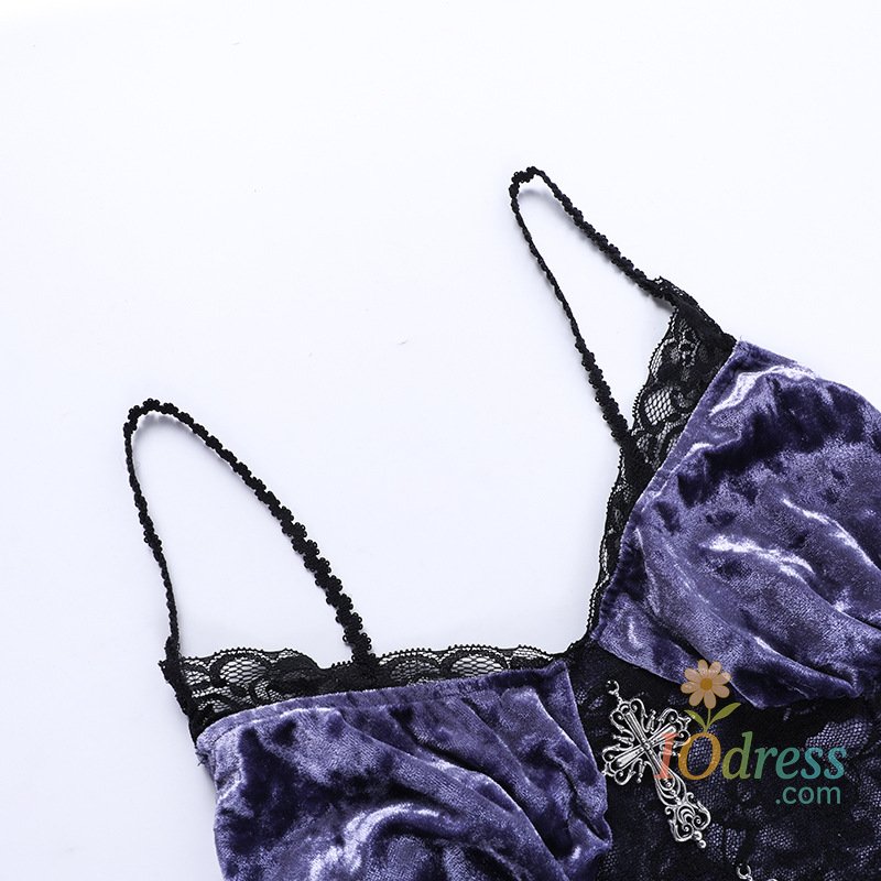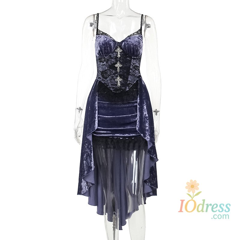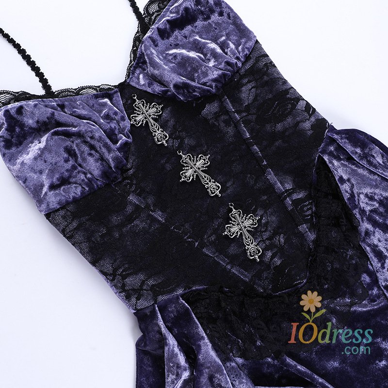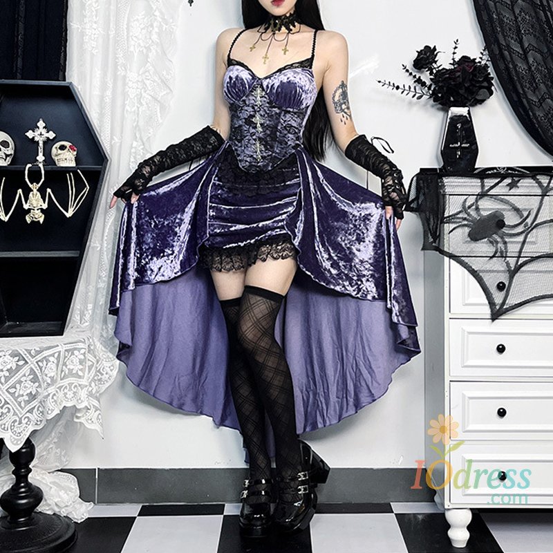 IO Dress Goth Dark Gorgeous Victoria Gothic Velvet A-line Dresses Female Elegant Evening Lolita Partywear Grunge Sling Lace Hem Alt Cloth