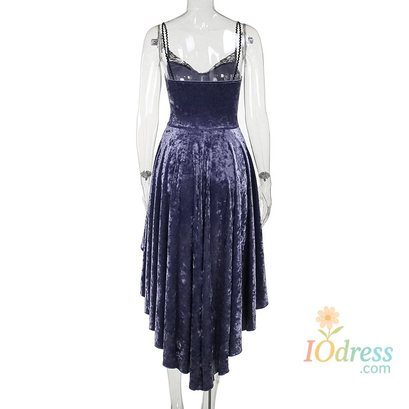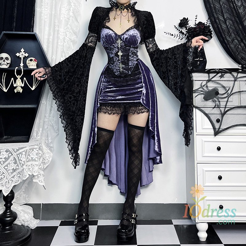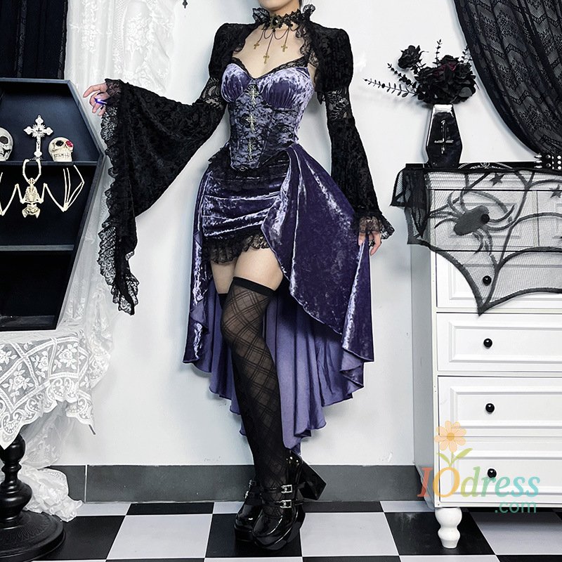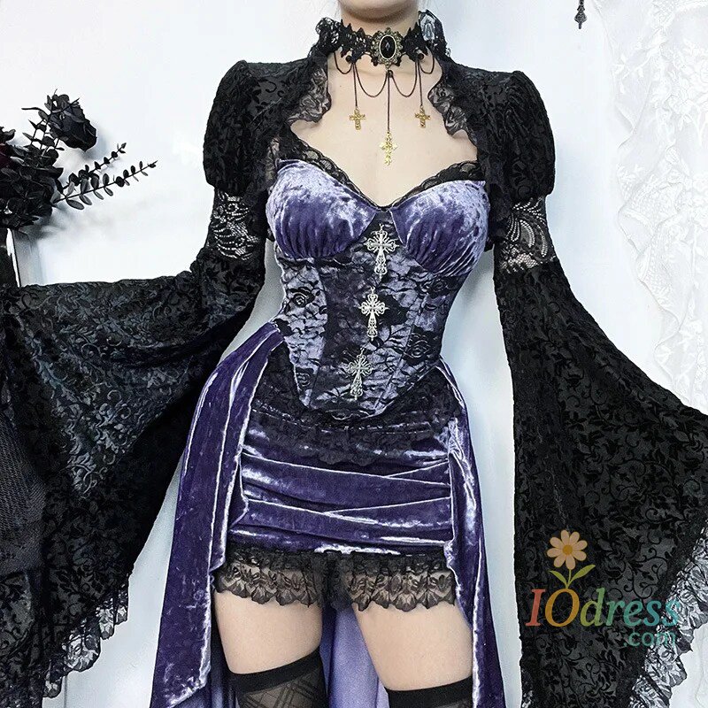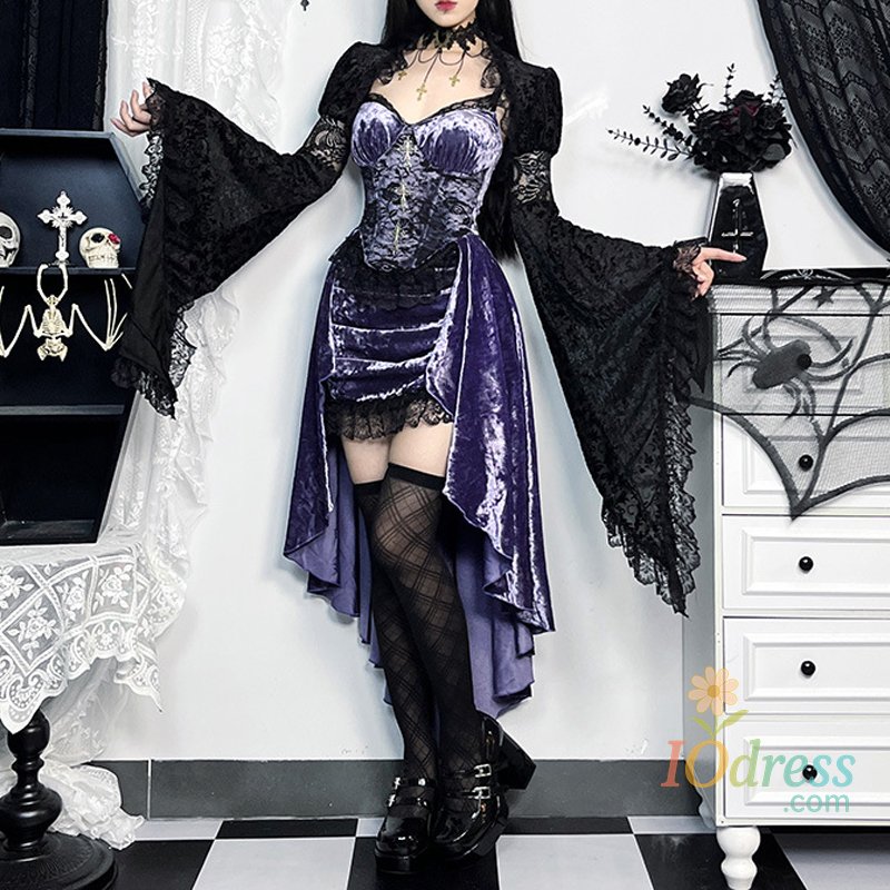 IO Dress Goth Dark Gorgeous Victoria Gothic Velvet A-line Dresses Female Elegant Evening Lolita Partywear Grunge Sling Lace Hem Alt Cloth